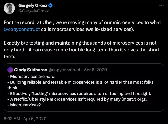 https://renegadeotter.com/2023/09/10/death-by-a-thousand-microservices.htmlИндустрия программного обеспечения еще раз осознает, что сложность убивает.
